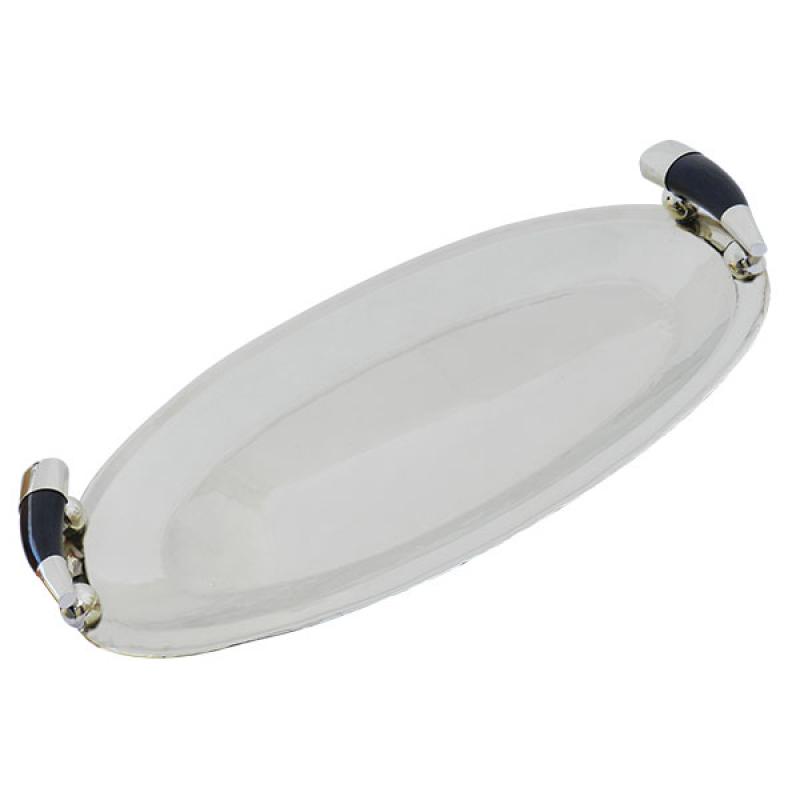 Bandeja De Alpaca Ovalada 40×24 Con Manijas De Asta