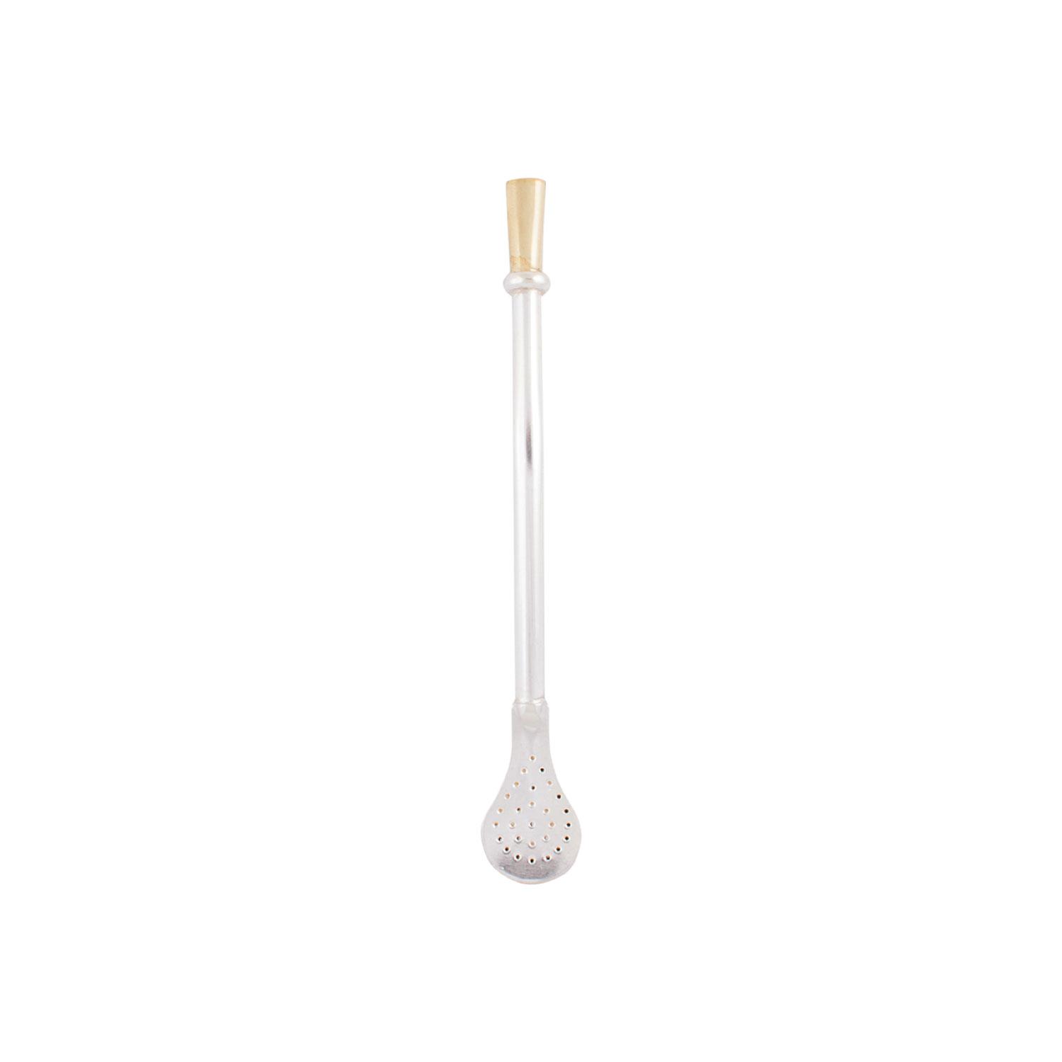 Bombilla De Alpaca Corta Con Pico Bañado En Oro 18K