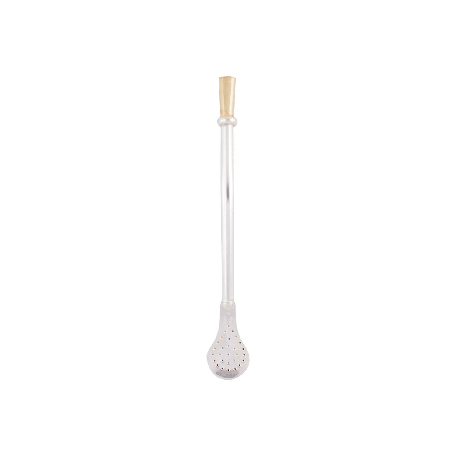 Bombilla De Alpaca Larga Con Pico Bañado En Oro 18K