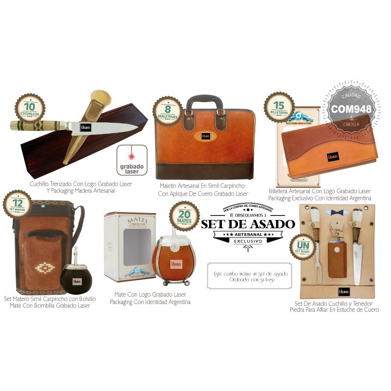 Combo Exclusivo Artesanal De 10 Cuchillos Trenzados Con Caja + 8 Maletines De Cuero + 15 Billeteras En Cuero + 12 Set Matero Simil Carpincho + 20 Mates Con Bombilla y Caja Incluye Un Set De Asado Cuchillo/Tenedor/Piedra Grabado De Regalo