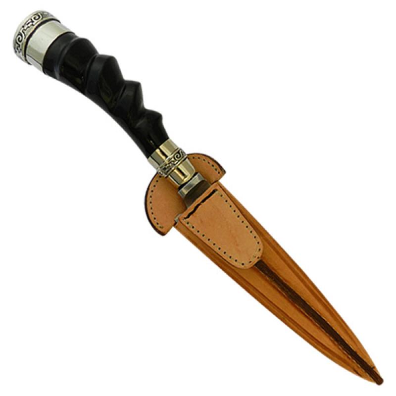 Cuchillo MORO Hoja Acero Inox PAMPEANA 14 Cm, Cabo De Resina Con Doble Detalle En Alpaca Con Funda De Cuero Vaqueta Clara Exclusiva