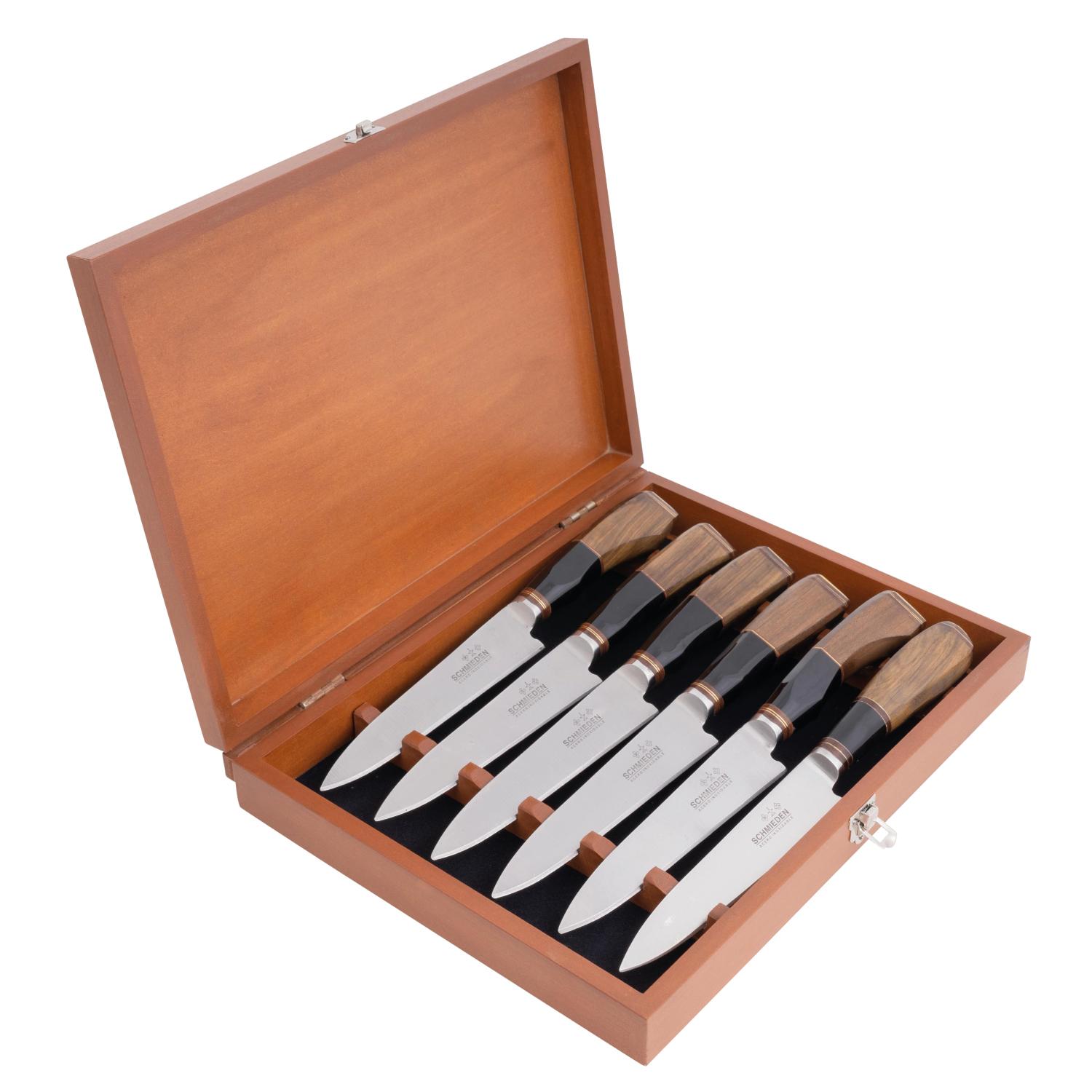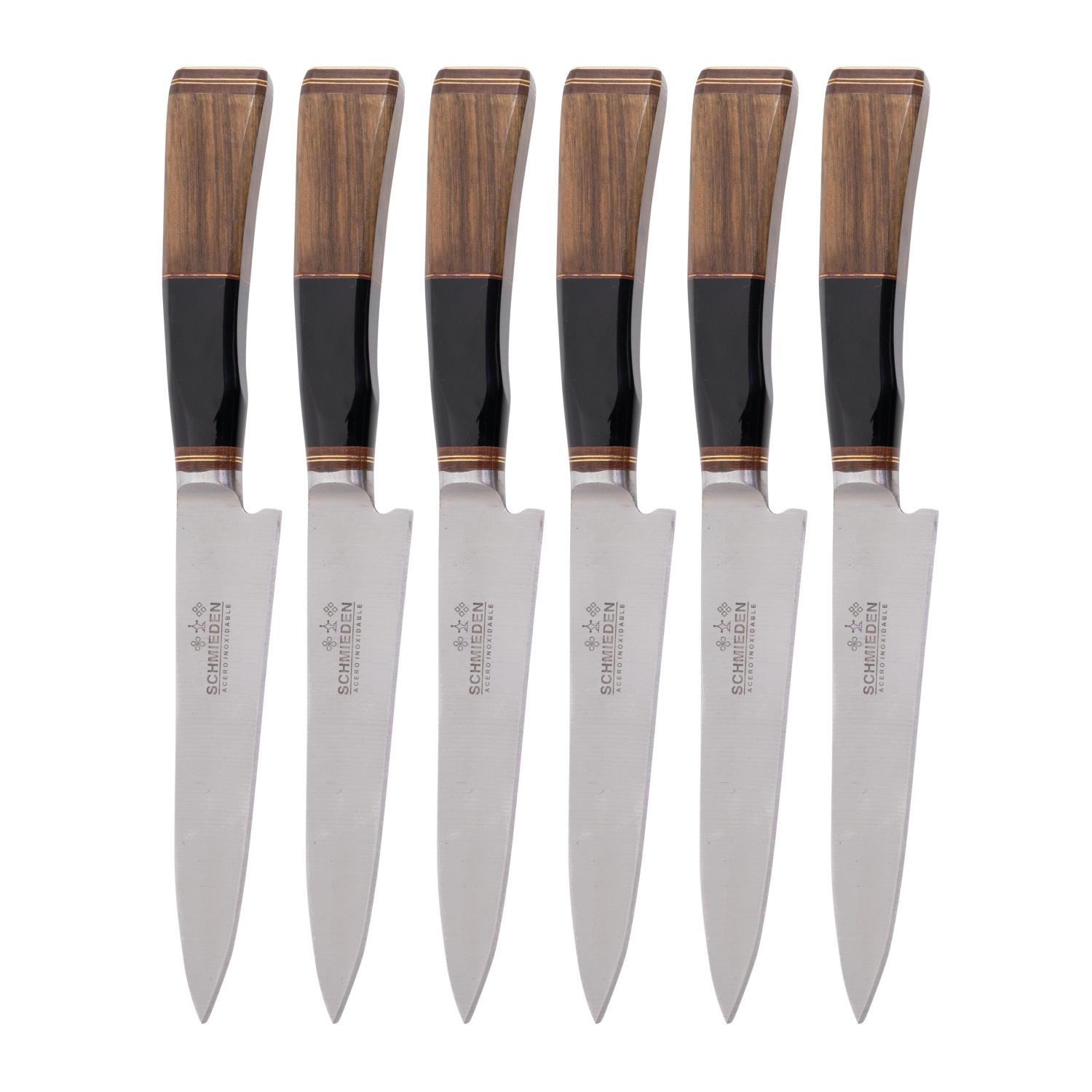 Juego de 6 Cuchillos En Madera Y Acrilico En Caja De Madera Claro