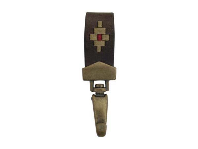 Llavero De Cuero Engrasado Bordado En Hilo Encerado y Mosqueton Con Gemelos