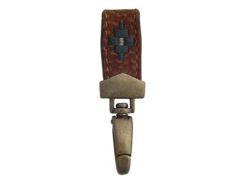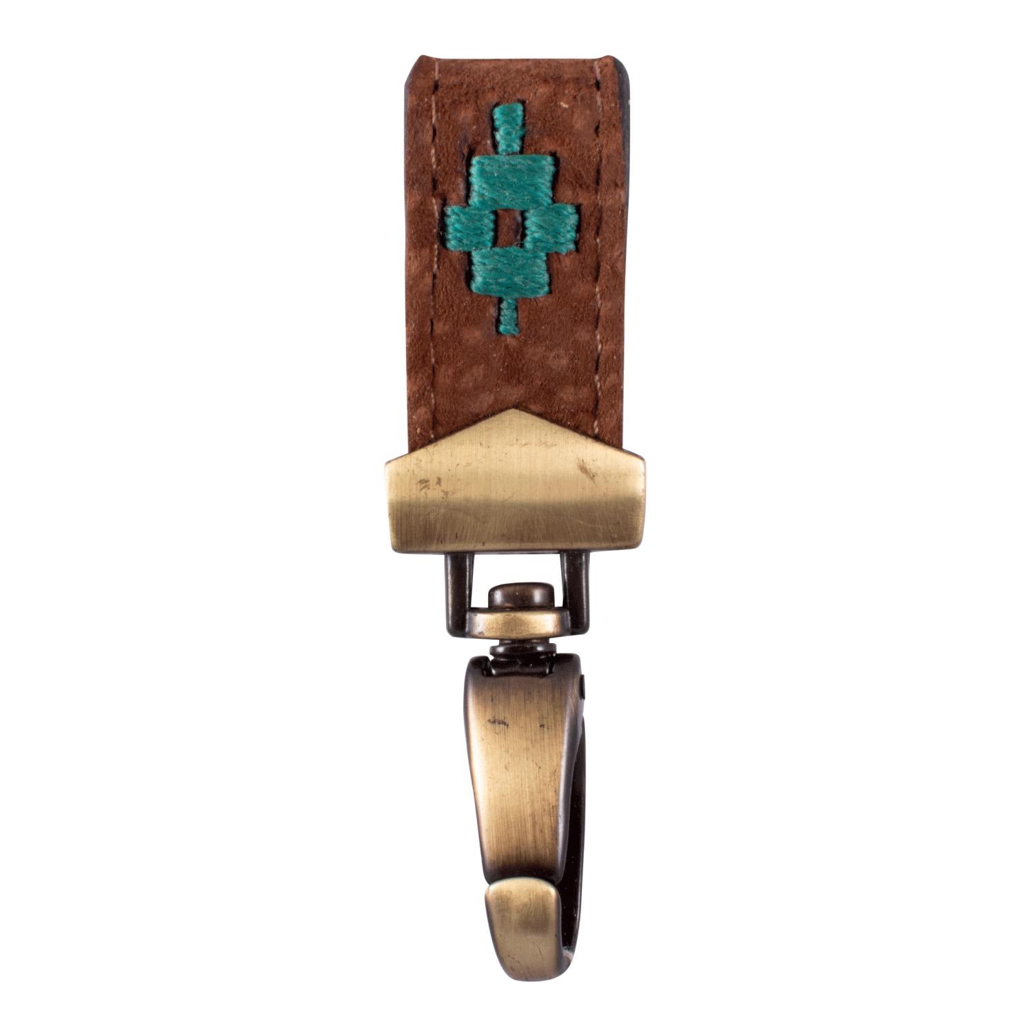 Llavero De Cuero Carpincho Bordado En Hilo Encerado y Mosqueton Con Gemelos