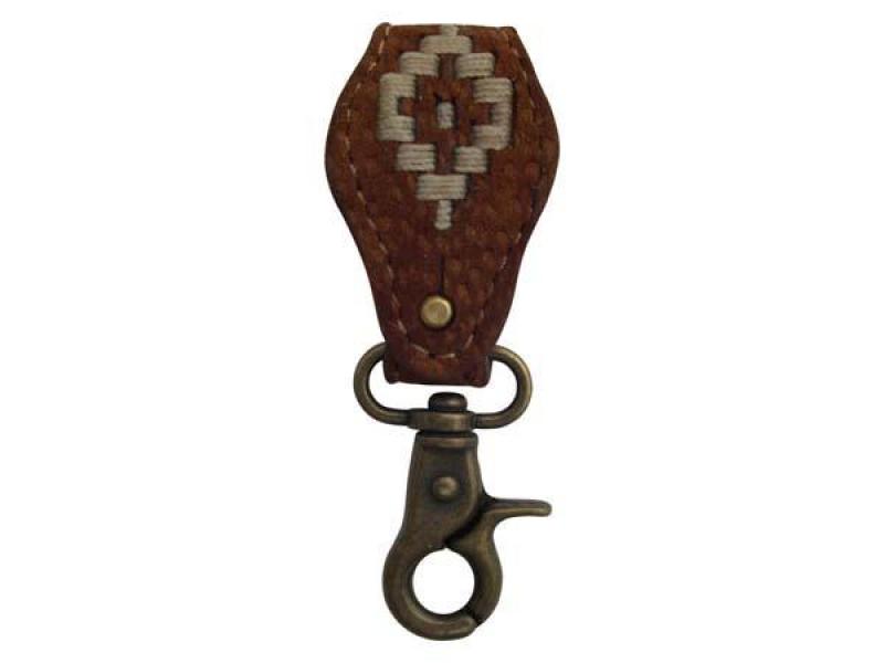 Llavero De Cuero Carpincho Bordado Con Mosqueton