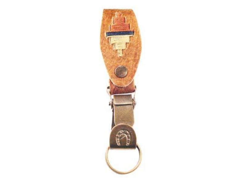 Llavero De Cuero Crudo Bordado En Hilo Encerado y Mosqueton Frontal Ancho
