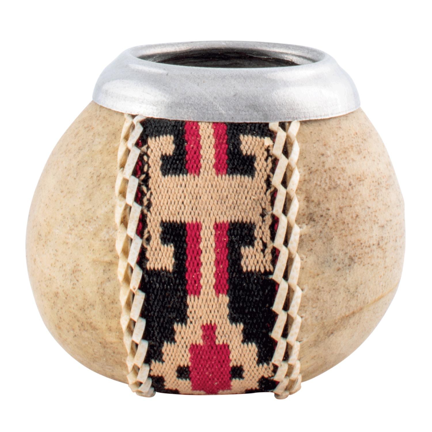 Mate Porito De Calabaza Forrado En Cuero Crudo Y Guarda Tejido Con Tiento