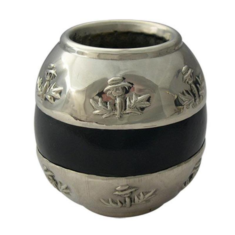 Mate Porito De Calabaza Con Boquilla y Base De Alpaca Con Figuras -Cardon-