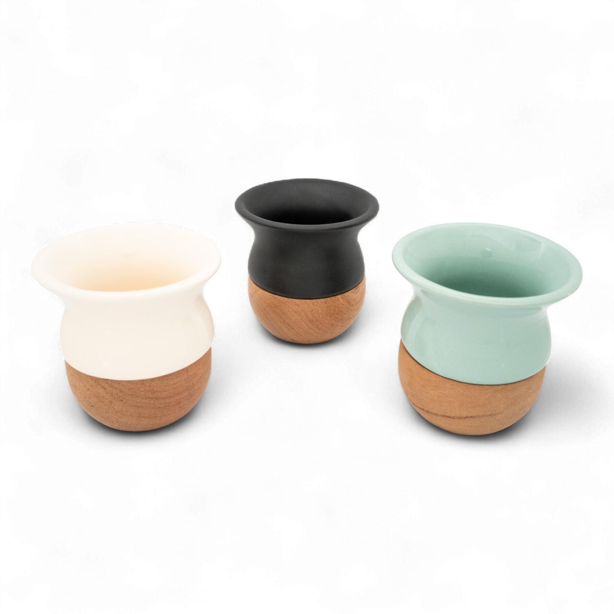Mate Bocón De Ceramica Con Base De Madera