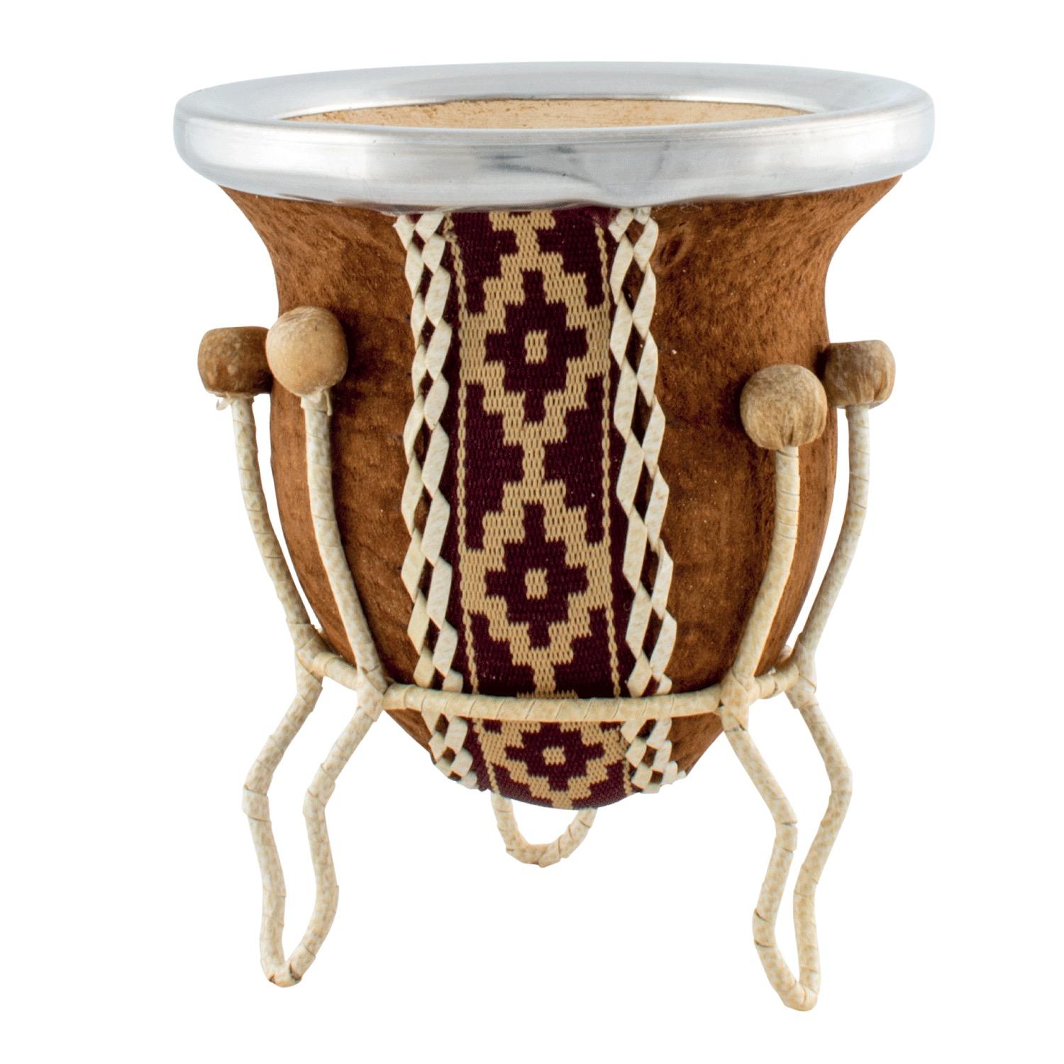 Mate Vuelo De Calabaza Recubierto En Cuero Carpincho Con Guarda Y Posa Forrado En Cuero Crudo