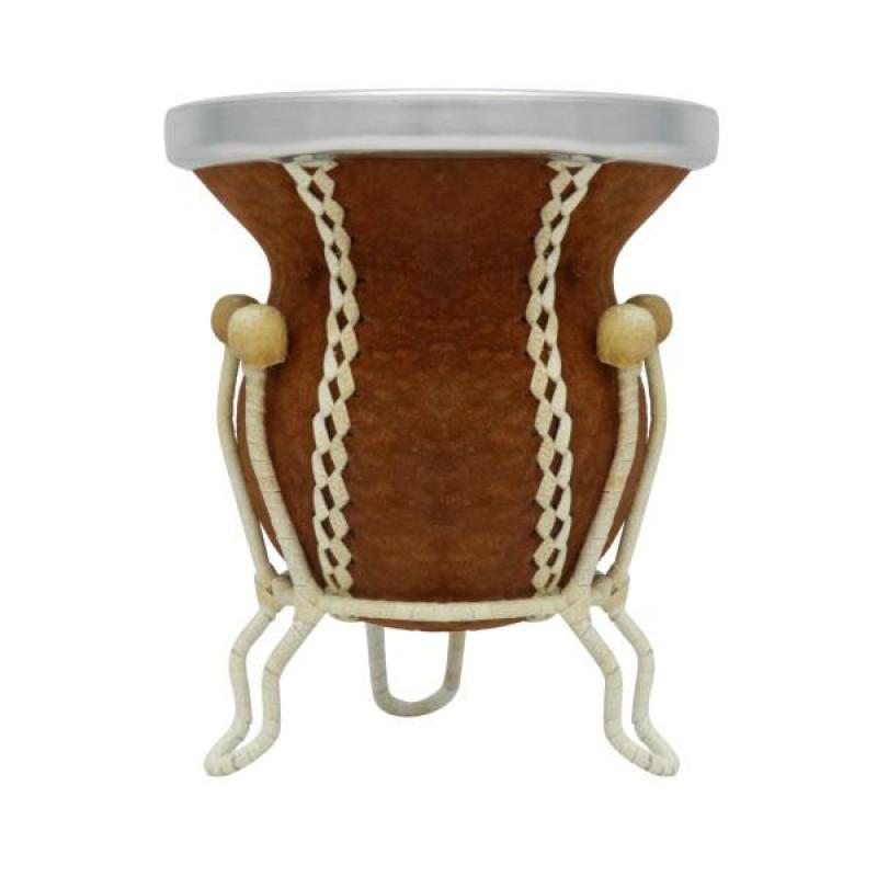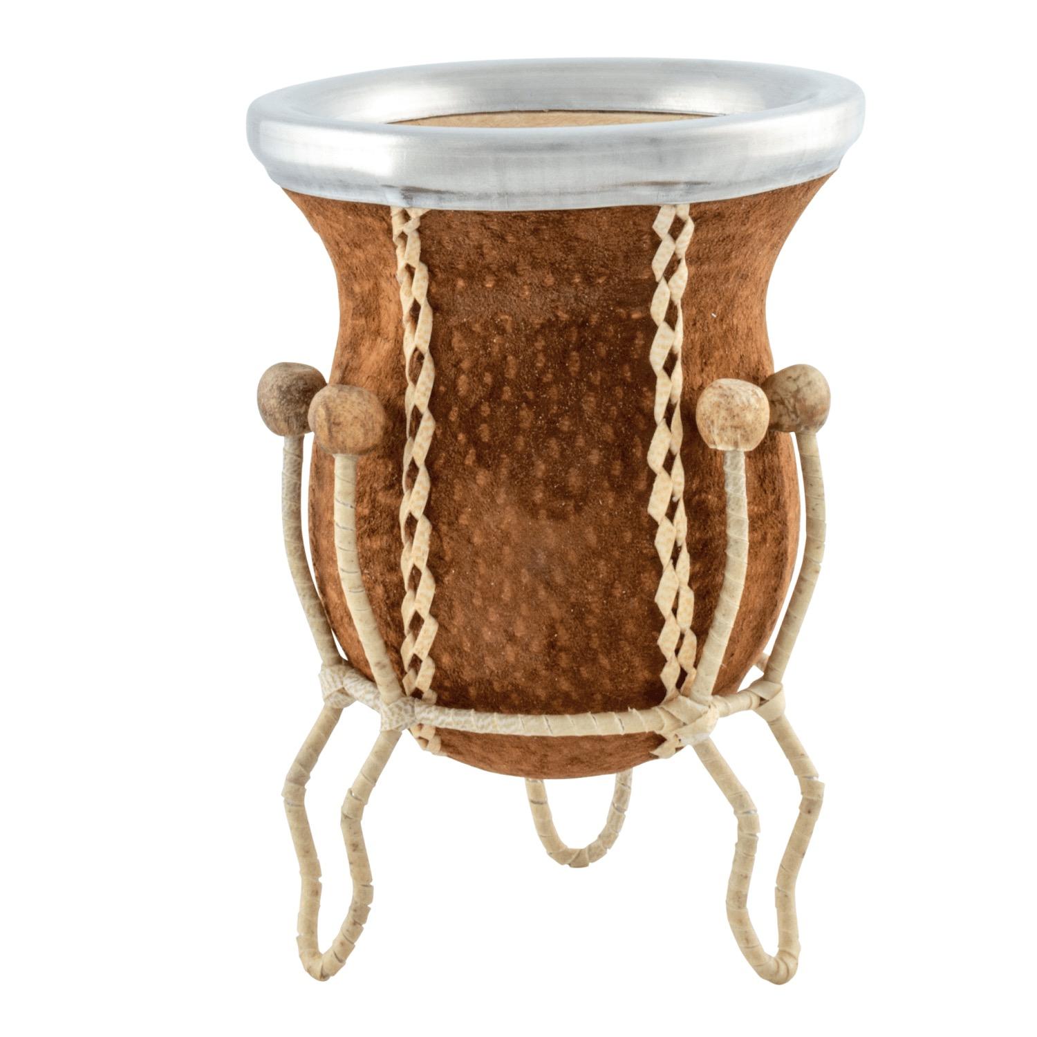 Mate Vuelo De Calabaza Recubierto En Carpincho Oscuro Con Posa Forrado En Cuero Crudo