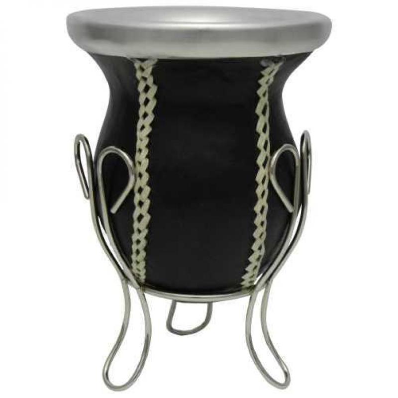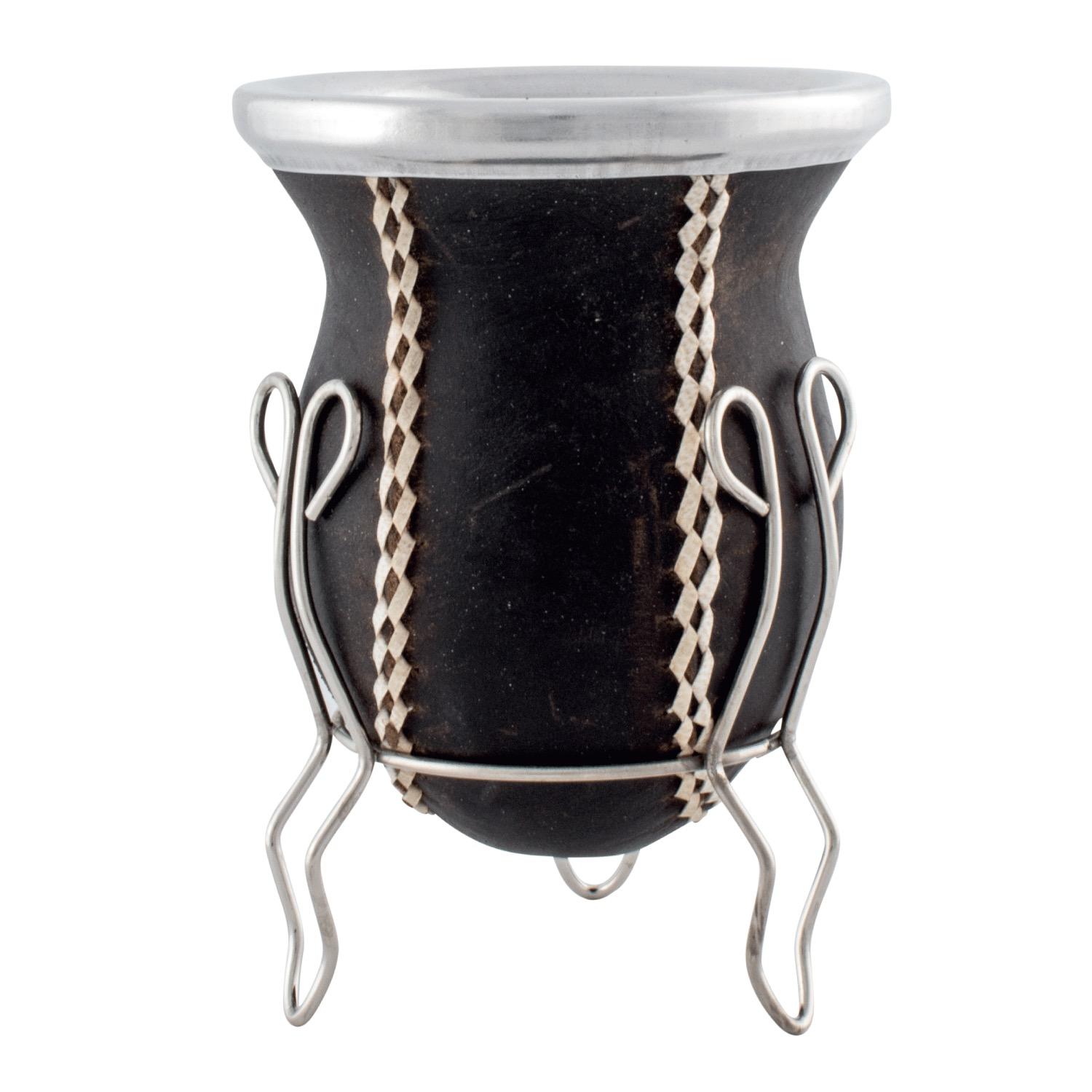 Mate Vuelo De Calabaza Recubierto En Cuero Vaqueta Tejido En Tiento Con Posa De Metal