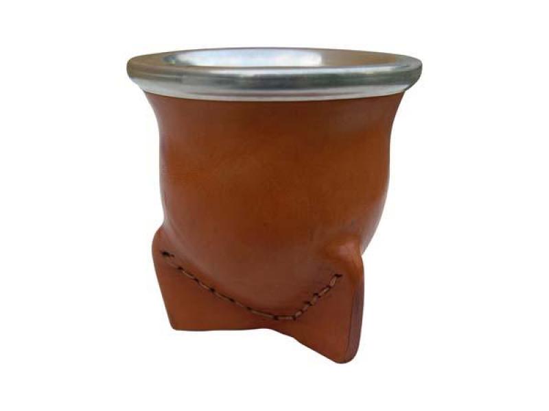 Mate Vuelo De Calabaza Forrado En Cuero Vaqueta Claro Con Patas