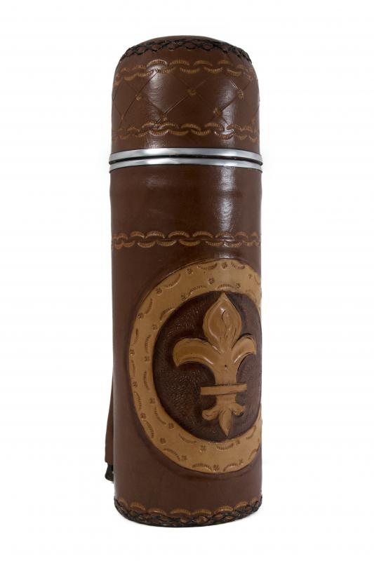 Termo De Acero Inoxidable Forrado En Cuero Vaqueta Repujado En Flor De Liz o Caballo